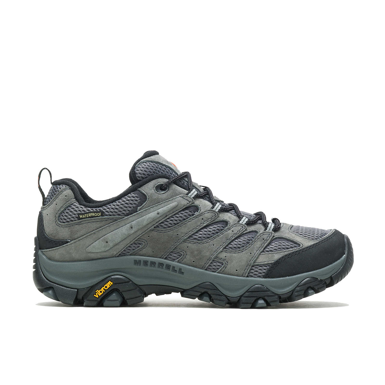 • Waterproof membrane for dry feet in all conditions.• Designed with gold-rated leather for durability and style.• Exclusive Moab 3 footbed contours to your foot for a more comfortable stride.• Best-in-class Vibram® TC5+ outsole for optimal traction and performance on any terrain, in any condition.• Merrell Air Cushion for maximum shock absorption.• Added support built into the ankle for stability on uneven terrain.• Protective rubber heel and toe cap for worry-free strides.• Made with 100% recycled laces, webbing, and mesh lining for our most eco-friendly Moab yet.