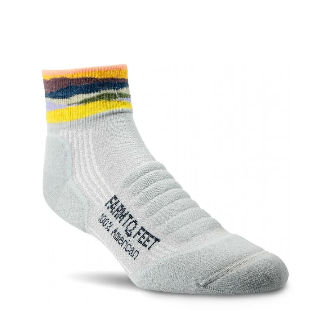 Max Patch, located just west of Asheville, NC, is one of the most popular spots on the Appalachian Trail for its 360 degree views. Part of the Farm to Feet Appalachian Trail collection, the Max Patch quarter crew sock features an infinite loop of mountain tops around its ankle, much like the view from the mountain’s grassy summit. The foot of the sock is based off our popular Damascus with targeted cushioning and reinforcement zones for superior comfort and durability, but in a lower height and great ankle-high views.